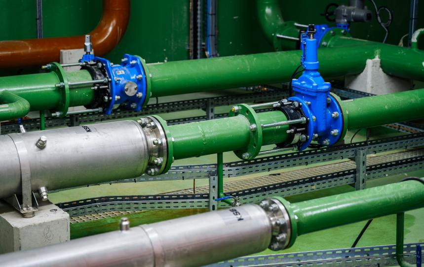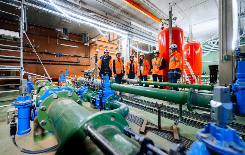 La station se développe sur deux niveaux. Le premier, en lien avec l’accès depuis l’extérieur, accueille les locaux électriques et d’automatismes, un poste de chloration et un groupe électrogène de secours. Le niveau inférieur, dédié aux équipements hydrauliques et conduites, comporte quatre lignes de pompage pour répondre aux besoins d’alimentation quotidienne des habitations à desservir et faire face aux pics de demande, y compris pour la défense contre l’incendie.