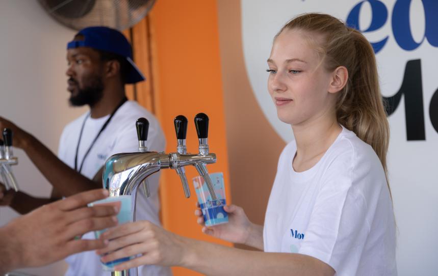 Au cœur du stand, les visiteurs pourront profiter d’un bar à eau où ils se verront offrir de l’eau du robinet plate ou gazeuse, fraîche ou tempérée dans des éco-cups (qu’ils pourront conserver ou restituer sur le stand, afin qu’ils soient recyclés). Les enfants pourront également se désaltérer au mini-bar, qui leur est dédié, avec une carte disponible de sirops au choix.