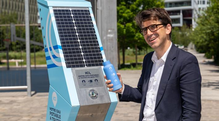 Le modèle choisi par le SEDIF, logoté et habillé aux couleurs du sport, est un véritable équipement de rafraichissement multifonction, utile et éco-responsable.