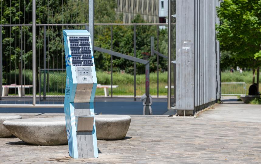 La fontaine à boire est accessible à toutes et tous (adultes, enfants, PMR). Elle est également autonome en énergie grâce à son panneau solaire intégré. Les équipements sont tous conçus, fabriqués et assemblés en France. Pour rappel, le bilan carbone de la production et distribution d’un litre d’eau potable est 400 à 1000 fois moindre que celui de l’eau en bouteille.