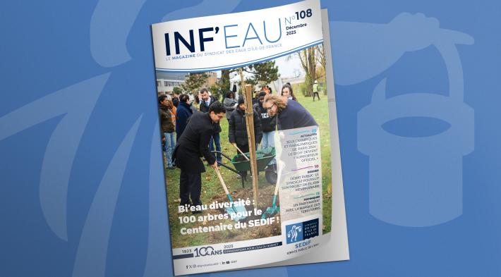 - les actualités environnement et actions internationales avec la prise de compétence Gestion et protection de la ressource, la plantation de 100 arbres pour le Centenaire du SEDIF à l'usine des eaux de Neuilly-sur-Marne et les actions du SEDIF pour limiter l'empreinte carbone de l'eau.
