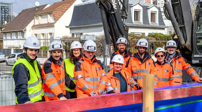 Dans le cadre du projet, il y a eu la réalisation d'une chambre de chloration et de deux chambres de débitmètres. Là où nous sommes, c'est au droit de la chambre de chloration donc elle est sous nos pieds mais dans le cadre de ces travaux, on travaille en collaboration avec les communes et parfois les départements. Et suite à ces travaux, nous avons réalisé une nouvelle placette en collaboration avec la ville de Livry-Gargan. On a fait quelque chose de beaucoup plus aéré et en cohérence avec l'aménagement urbain qu'il y a sur la commune.