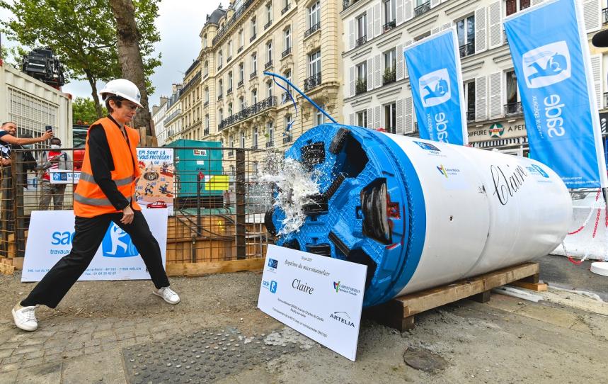 La pose de cette canalisation est prévue, sur les deux tiers du linéaire, via un microtunnelier. Son baptême a lieu ce 30 juin, en présence des équipes du SEDIF et des entreprises œuvrant sur le chantier : la SADE, Artélia et le Cabinet Merlin. Héritage symbolique de la Sainte-Barbe, il est d’usage qu’une marraine donne son nom à la machine.